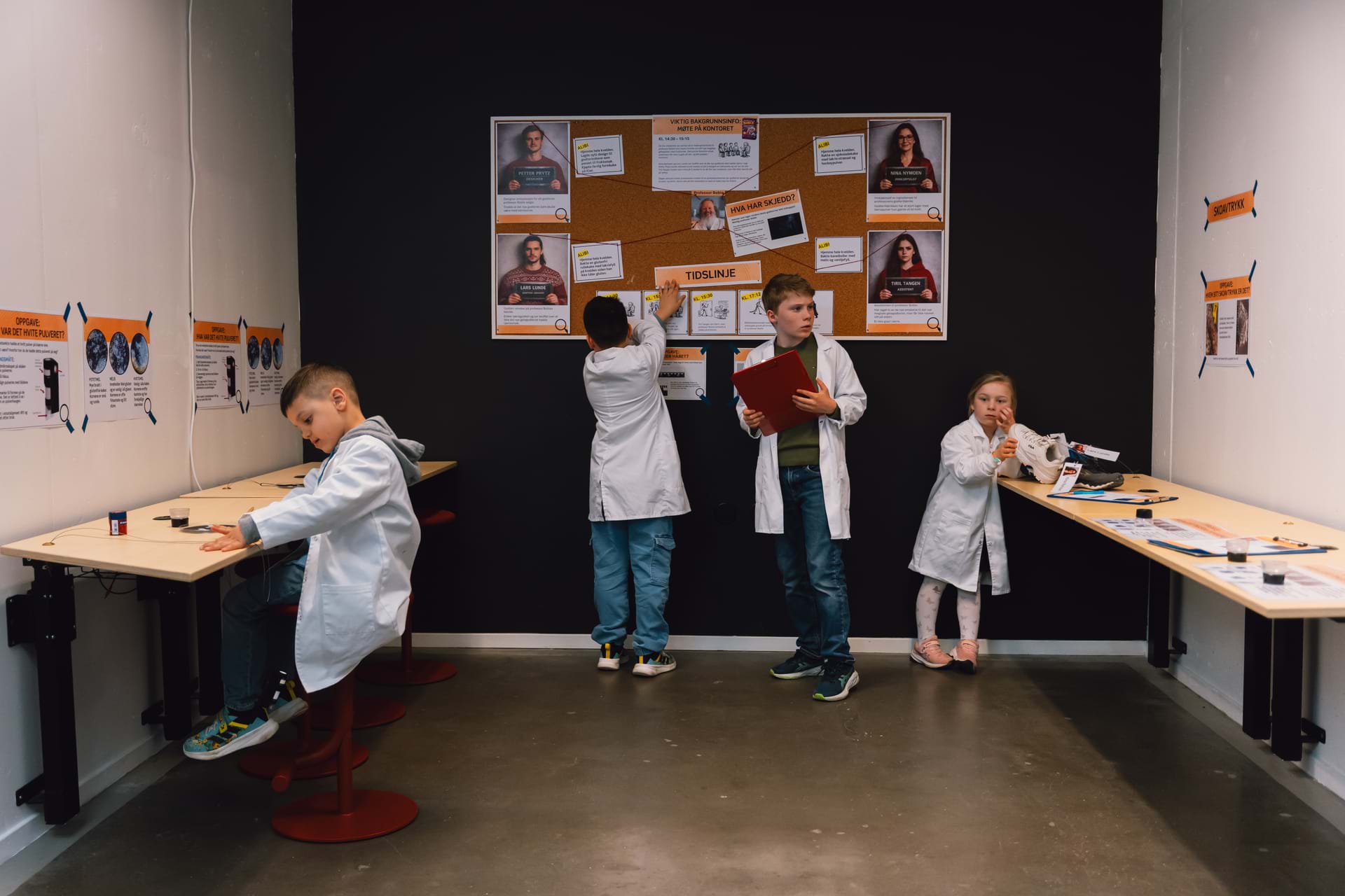 I Krimlaben må du samarbeide med laget ditt for å løse en rekke utfordrende gåter, knekke koder og finne skjulte spor. Hver oppgave bringer deg ett steg nærmere løsningen. Bruk logisk tenkning, vær kreativ, og følg hintene nøye – det kan være små detaljer som avslører den store løsningen.
